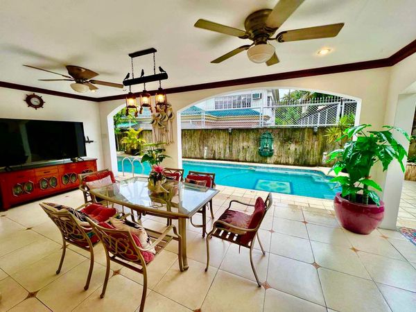 This renovated two-level residence offers spacious living across 443 sqm, featuring four bedrooms plus a den and 4.5 baths. Complete with a separate den/office and staff quarters with their own bath, it provides convenience and privacy. The kitchen includes a walk-in pantry/storage, and there's a separate utility area. With three dedicated parking slots, semi-furnished amenities, and pet-friendly policy, this home blends practicality with comfort.